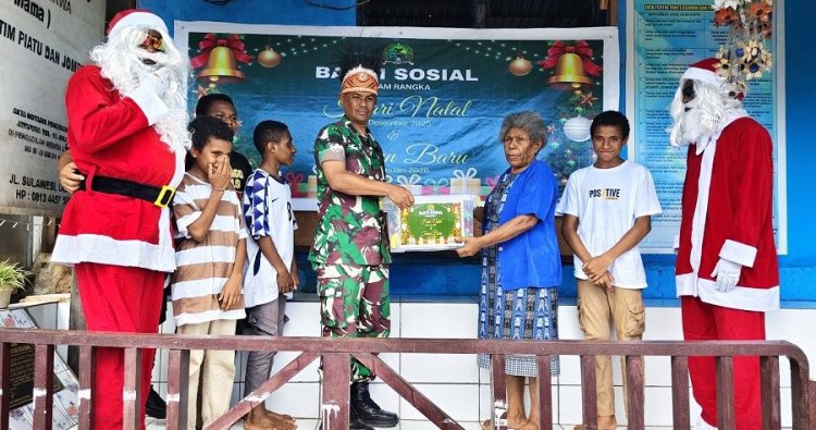 Jayapura – Dalam rangka menyambut Hari Raya Natal 2025 dan Tahun Baru 2026, Kodim 1701/Jayapura menggelar kegiatan bakti sosial bertajuk Peduli Kasih dengan menyalurkan bingkisan Natal kepada anak-anak panti asuhan. Kegiatan tersebut dilaksanakan di dua lokasi, yakni Panti Asuhan Air Mata Mama di Kota Jayapura dan Panti Asuhan Shalom Arso VIII, Kabupaten Keerom. Selasa (23/12/2025)