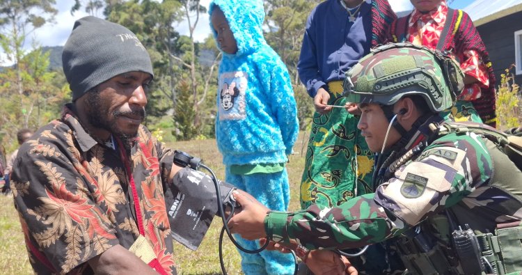 satgas 408/sbh komsos humanis damai papua pelayanan kesehatan tni tni hadir tumbupur peduli