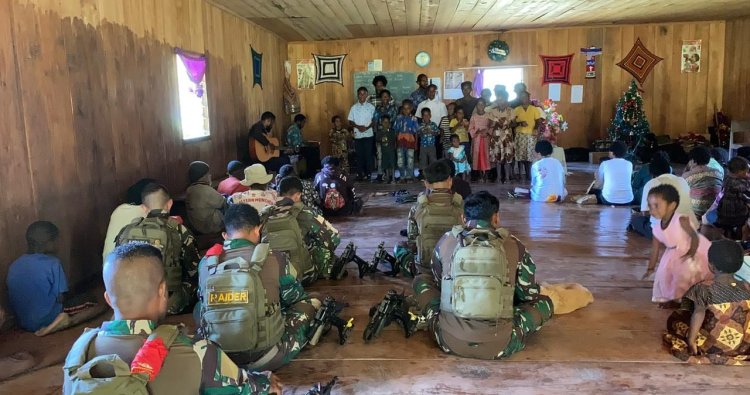 PUNCAK - Di tengah kehangatan suasana Papua Pegunungan, segenap prajurit Satgas Pamtas RI-PNG Mobile Yonif 732/Banau melalui Pos Marilakuin menunjukkan sisi humanisnya dengan menggelar ibadah Minggu bersama masyarakat Kampung Marilakuin, Distrik Wangbe, Kabupaten Puncak, pada Minggu (23/11/2025). Inisiatif ini menjadi salah satu wujud nyata dari program 'Sahabat Banau' (Saling Hargai dan Toleransi Banau Amankan Natal dan Tahun Baru) yang kian gencar digaungkan menjelang momen akhir tahun.