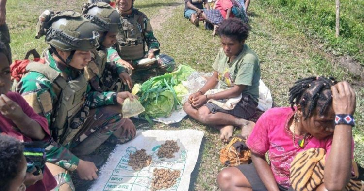 PUNCAK - Senyum merekah di wajah para petani Kampung Marilakuin, Distrik Wangbe, Kabupaten Puncak, Papua Tengah. Kehadiran personel Satgas Pamtas RI-PNG Yonif 732/Banau melalui program pembelian langsung hasil pertanian atau Rosita di Pos Marilaukin pada Selasa (9/12/2025) menjadi berkah tersendiri.