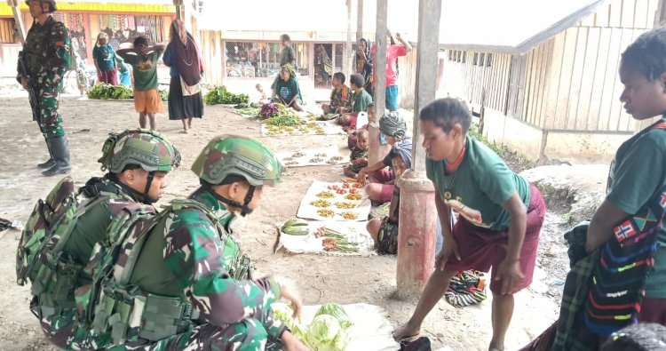 Di tengah keramaian pasar, terdengar tawa dan canda di antara prajurit dan warga. Keakraban itu mencairkan jarak, menegaskan bahwa TNI tidak hanya bertugas menjaga keamanan, tetapi juga hadir sebagai sahabat dan saudara bagi rakyat Papua.