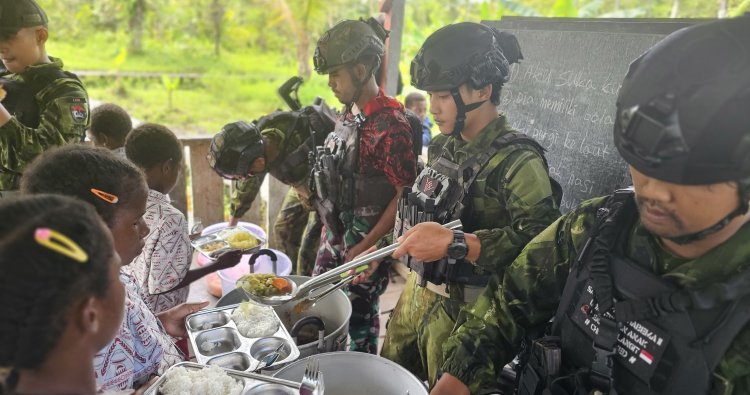 ASMAT - Prajurit Satgas Pamtas RI-PNG Mobile Yonif 733/Masariku kembali menunjukkan kepeduliannya terhadap masyarakat di wilayah perbatasan. Melalui program bertajuk “Masariku Peduli Gizi”, para prajurit menggelar kegiatan edukasi dan pembagian makanan sehat bagi para siswa SD Rimba YPPK Yan Smith Mumugu 2, Distrik Sawa Erma, Kabupaten Asmat, Papua, pada Selasa (5/11/2025).