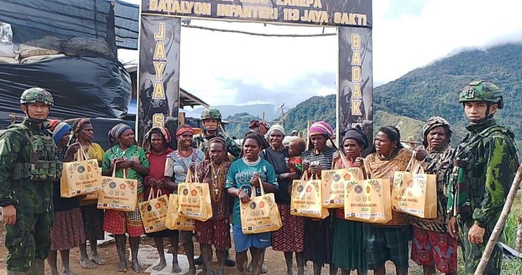 INTAN JAYA - Suasana Natal yang hangat menyelimuti Kampung Zanepa, Distrik Homeyo, Kabupaten Intan Jaya, Papua Tengah. Personil Satgas Pamtas RI PNG Mobile Yonif 113/JS TK, yang akrab disapa Pos Zanepa, tak hanya hadir sebagai penjaga perbatasan, tetapi juga sebagai bagian dari masyarakat, merajut kebersamaan dalam suka cita.