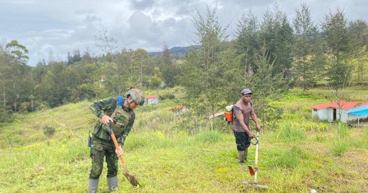 PUNCAK - Di bawah selubung kabut pagi Kampung Nipuralome, Distrik Omukia, Kabupaten Puncak, Papua, sebuah pemandangan haru terhampar. Puluhan personel Satgas Yonif 700/WYC dari Pos Titik Kuat Bendungan tidak ragu turun tangan, bahu membahu bersama warga setempat untuk membuka lahan perkebunan yang baru. Dipimpin oleh Serda Alim Bahri, aksi ini merupakan manifestasi dari program Pembinaan Teritorial (Binter) Terbatas yang digagas untuk memperkokoh fondasi ketahanan pangan di jantung Papua. Selasa (18/11/2025)