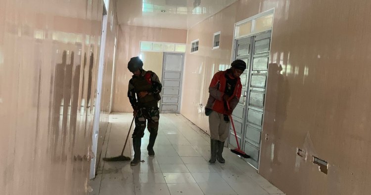 Dengan semangat membara, para prajurit membawa segala perlengkapan, mulai dari sapu dan cangkul untuk membersihkan rumput liar serta sampah dedaunan, hingga perkakas pertukangan sederhana. Halaman dan fasilitas pendukung puskesmas disulap menjadi lebih rapi dan nyaman. Beberapa perbaikan kecil pun dilakukan demi memastikan kenyamanan dan kelayakan penggunaan fasilitas kesehatan vital ini.