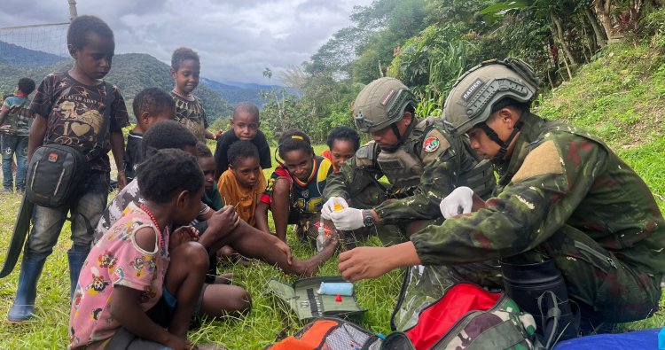 Kabut pagi yang masih enggan beranjak dari lembah seolah tak mampu meredupkan semangat tim Satgas saat tiba di Mewoluk. Sambutan hangat dari anak-anak yang berlarian menyambut kedatangan mereka, menciptakan atmosfer keakraban yang tulus. Tanpa berlama-lama, para prajurit segera membuka pos pemeriksaan kesehatan, siap melayani mulai dari pengecekan tekanan darah hingga perawatan luka ringan yang diderita warga.