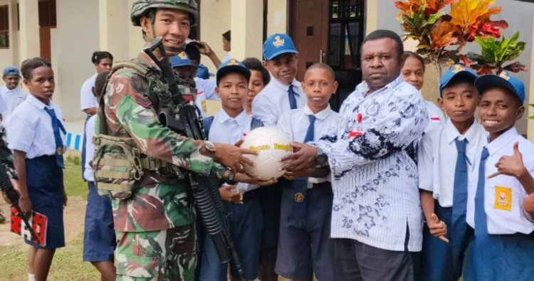MAYBRAT - Di tengah bentangan alam perbatasan yang menantang, semangat pembinaan generasi muda terus digaungkan. Satuan Tugas Pengamanan Perbatasan (Satgas Pamtas) RI–PNG Mobile Yonif 10 Marinir/SBY mengambil langkah nyata untuk menumbuhkan nilai-nilai sportivitas di kalangan pelajar. Pada Rabu (28/1/2026), sekolah menengah pertama di wilayah terpencil, SMP Negeri 2 Aifat Timur, Kabupaten Maybrat, Papua Barat Daya, menerima donasi sarana olahraga berupa bola voli.