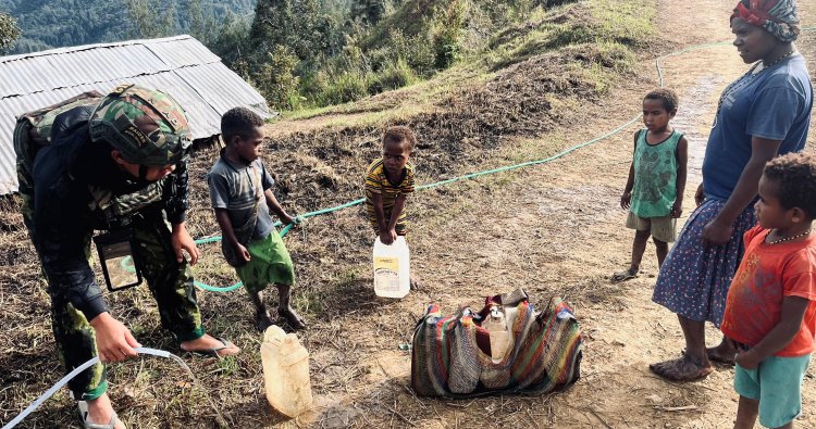 INTAN JAYA - Di tengah bentangan alam pedalaman Papua Tengah yang menantang, Satgas Pamtas RI–PNG Mobile Yonif 113/Jaya Sakti membuktikan kehadirannya bukan sekadar menjaga garis batas negara, tetapi juga menyentuh denyut nadi kehidupan masyarakat. Sabtu (3/1/2026) menjadi saksi bisu bagaimana personel Titik Kuat (TK) atau Pos Engganengga, yang berlokasi di Kampung Engganengga, Distrik Homeyo, Kabupaten Intan Jaya, secara proaktif mengatasi salah satu kebutuhan paling mendasar: air bersih.
