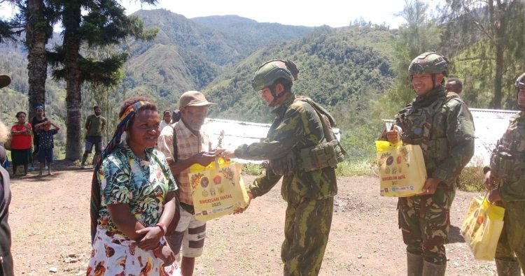 INTAN JAYA - Jejak kepedulian mendalam terbentang di Kampung Hiyabu, Intan Jaya, Papua Tengah. Satuan Tugas (Satgas) Pengamanan Perbatasan (Pamtas) RI–PNG Mobile Yonif 113/Jaya Sakti tak henti menyalurkan uluran tangan. Melalui Pos Sementara, personel Satgas dengan tulus melaksanakan aksi sosial pembagian paket sembako secara langsung dari rumah ke rumah warga. Kegiatan penuh makna ini berlangsung pada Senin, (29/12/2025), menyentuh hati masyarakat di pedalaman.