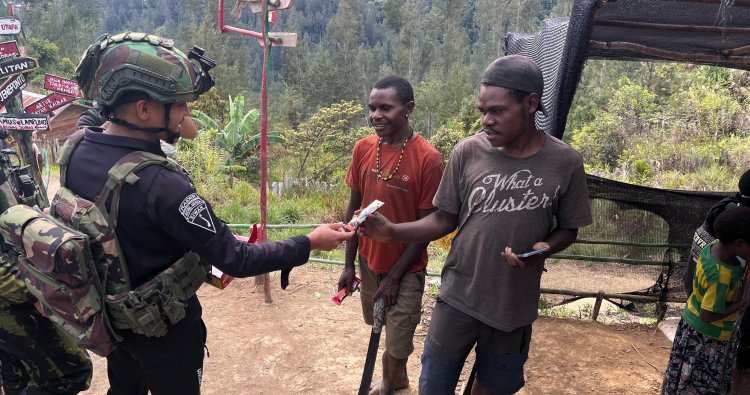 INTAN JAYA - Di tengah denyut kehidupan Kampung Engganengga, Distrik Homeyo, Kabupaten Intan Jaya, Papua Tengah, sebuah momen sederhana namun penuh makna terjalin. Satgas Pamtas RI–PNG Mobile Yonif 113/Jaya Sakti, melalui Pos Engganengga, tak sekadar menjaga perbatasan, tetapi juga merajut tali persaudaraan dengan menggelar acara ngopi bareng bersama warga. Tak hanya orang dewasa, senyum riang anak-anak kampung pun merekah saat menerima bingkisan cokelat dari para prajurit.