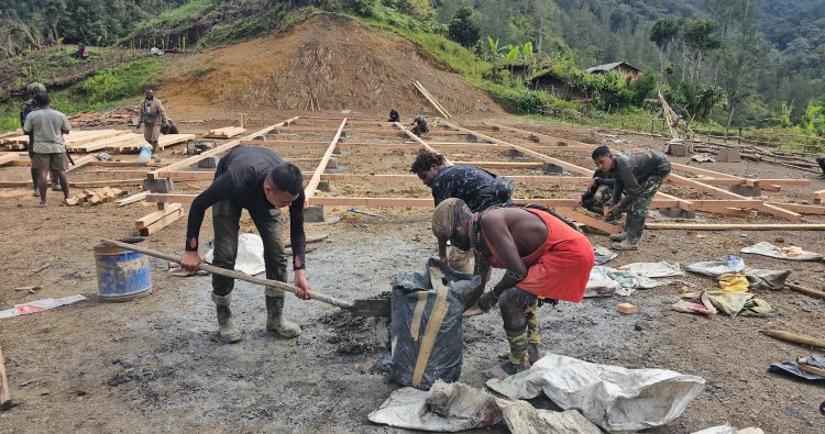 INTAN JAYA - Kepedulian dan kemanunggalan TNI dengan rakyat kembali terwujud di pedalaman Papua Tengah. Personel Satuan Tugas (Satgas) Pamtas RI–PNG Mobile Yonif 113/Jaya Sakti (JS) Pos Kendetapa bergotong royong bersama masyarakat Kampung Hugitapa membangun Gereja Maranatha Hugitapa, Distrik Homeyo, Kabupaten Intan Jaya, Kamis (19/2/2026).