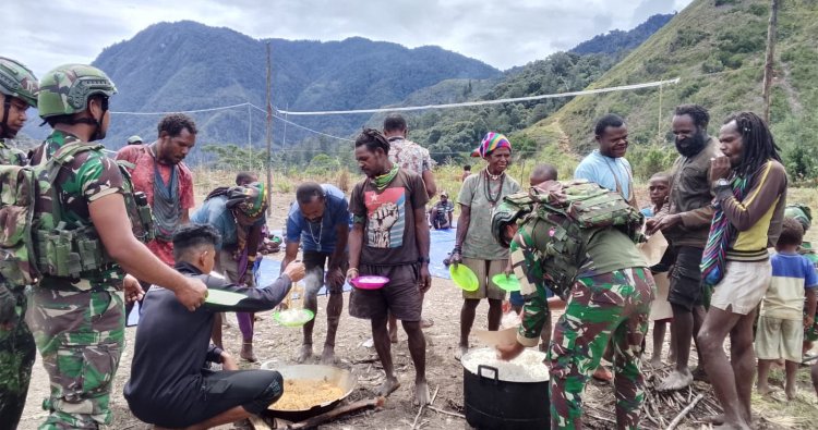 INTAN JAYA - Senyum merekah dan kehangatan terasa begitu nyata di Kampung Bilai, Kabupaten Intan Jaya, Papua Tengah, saat personel Satgas Pamtas RI–PNG Mobile Yonif 113/Jaya Sakti (JS) Pos Bilai menggelar inisiatif sosial bertajuk “Jaya Sakti Menyapa dan Berbagi” pada Selasa (2/12/2025). Lebih dari sekadar kegiatan rutin, momen ini menjadi jembatan emosional yang mengikat erat personel satgas dengan masyarakat setempat melalui kehangatan dapur dan keikhlasan berbagi.