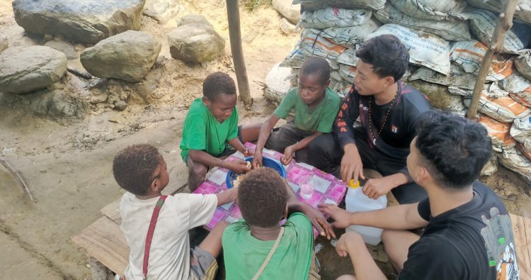 INTAN JAYA - Dalam wujud nyata kepedulian terhadap generasi muda di pedalaman Papua, Satgas Pamtas RI-PNG Mobile Yonif 113/Jaya Sakti (JS) Pos TK Pogapa menggelar kegiatan sosial bertajuk “Jaya Sakti Berbagi” dengan memberikan makanan gratis kepada anak-anak Kampung Pogapa, Distrik Homeyo, Kabupaten Intan Jaya, pada Sabtu (25/10/2025).