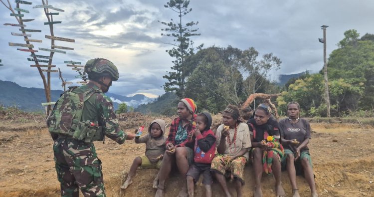INTAN JAYA - Suasana hangat menyelimuti Kampung Kendetapa, Distrik Homeyo, Intan Jaya, Papua Tengah, pada Rabu (19/11/2025). Personel Satgas Pamtas RI-PNG Mobile Yonif 113/Jaya Sakti dari TK Kendetapa dengan tulus membagikan makanan ringan, menyentuh hati anak-anak, remaja, hingga para mama di kampung tersebut. Aksi sederhana ini menjadi jembatan kedekatan yang tak ternilai antara prajurit penjaga batas negara dengan masyarakat setempat, di tengah kesejukan pegunungan Intan Jaya.