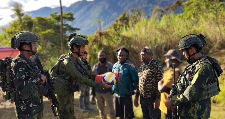 INTAN JAYA - Suasana haru dan penuh semangat mewarnai Kampung Ogeapa, Intan Jaya, Papua Tengah, pada Senin (24/11/2025). Satuan Tugas (Satgas) Pamtas RI-PNG Mobile Yonif 113/Jaya Sakti (JS) kembali menunjukkan kepeduliannya dengan menyalurkan bantuan vital untuk membangkitkan gairah olahraga di kalangan muda-mudi.