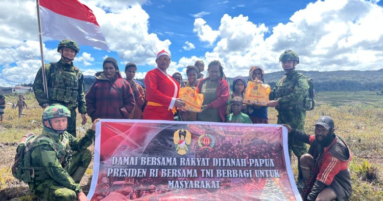 PUNCAK - Menyambut semarak Natal dan pergantian tahun, Pos Agandugume Satgas Yonif 142/KJ tidak hanya menjaga keamanan, tetapi juga menebar kehangatan melalui aksi kepedulian. Pada Selasa (30/12/2025), bingkisan sembako dibagikan langsung ke rumah-rumah warga Distrik Agandugume, Kabupaten Puncak, Papua Tengah. Aksi ini menjadi jembatan emosional antara TNI dan masyarakat, menegaskan kehadiran negara di pelosok pegunungan.