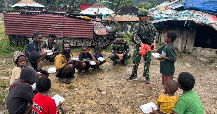 PUNCAK - Senyum merekah di wajah warga Distrik Sinak, Kabupaten Puncak, Papua Tengah, pada Rabu (11/2/2026). Kehangatan bukan hanya datang dari cuaca, namun juga dari aksi nyata Satgas Yonif 142/Ksatria Jaya (KJ) melalui Pos Sinak Pasar yang menggelar kegiatan Makan Bergizi Gratis (MBG). Program ini adalah wujud tulus kepedulian TNI terhadap kesehatan dan kesejahteraan masyarakat, terutama anak-anak dan keluarga yang mendiami wilayah penugasan ini.