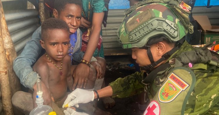 PUNCAK - Di tengah hamparan alam Puncak, Papua, sebuah senyum hangat dan kepedulian tulus terpancar dari Pos Agandugume yang dijaga oleh Satgas Yonif 142/Ksatria Jaya. Mereka tak hanya menjaga perbatasan, namun juga merawat generasi penerus bangsa melalui sentuhan layanan kesehatan yang menyentuh hati, Selasa (9/2/2026).