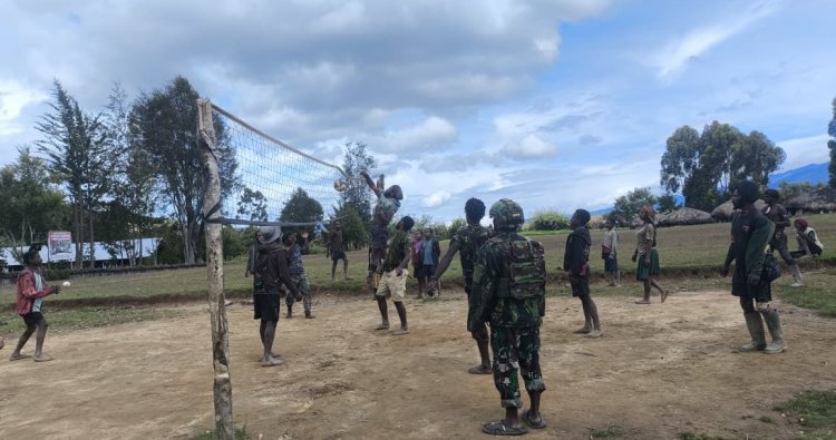 LANNY JAYA - Di tengah sejuknya udara pegunungan Papua, lapangan sederhana di Kampung Andugume, Distrik Wano Barat, Kabupaten Lanny Jaya, Papua Pegunungan pada Kamis (12/2/2026) menjelma menjadi saksi bisu hangatnya kebersamaan. Prajurit Satgas Yonif 408/Sbh secara spontan berbaur dengan masyarakat setempat, menciptakan tawa riuh dan sorak sorai dalam sebuah pertandingan bola voli yang tak sekadar adu skor, namun sarat makna persaudaraan.