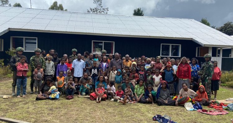 Di dalam gereja yang sederhana namun penuh makna itu, personel TNI dan para jemaat memanjatkan doa serta pujian dengan hati yang terbuka. Senyum tulus dari para prajurit disambut hangat oleh warga, mempertegas ikatan emosional yang telah terjalin erat selama Satgas bertugas di Andugume. Ibadah ini lebih dari sekadar rutinitas rohani; ia adalah wujud nyata dari persaudaraan yang mengakar kuat di Tanah Papua.