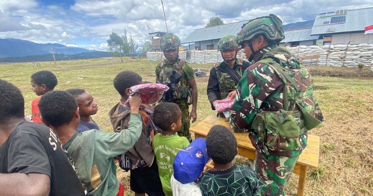 LANNY JAYA - Suasana haru dan bahagia tampak menyelimuti Kampung Nenggeagin, Distrik Nenggeagin, Kabupaten Lanny Jaya, Papua Pegunungan, pada Rabu (29/10/2025). Prajurit Satgas Yonif 408/Sbh Pos Nenggeagin di bawah Koops TNI Habema hadir membawa kebahagiaan dengan membagikan pakaian layak pakai untuk anak-anak warga setempat.