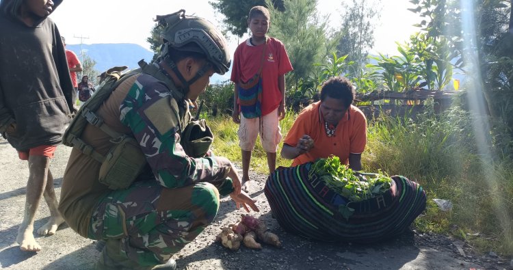 Di sepanjang jalan poros Sugapa–Beoga, para mama-mama Papua dengan penuh semangat membawa hasil bumi mereka, mulai dari sayuran segar hingga tanaman pangan, menuju Pasar Yokatapa. Satgas Yonif 500/Sikatan hadir di sana, bukan sebagai pihak yang berjarak, melainkan sebagai saudara yang ingin meringankan beban dan turut merasakan denyut nadi ekonomi lokal.