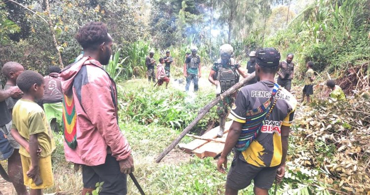 INTAN JAYA - Di tengah kabut pagi yang menyelimuti pegunungan Intan Jaya, kebersamaan antara prajurit TNI dan masyarakat Kampung Eknemba terjalin erat. Satgas Yonif 712/Wiratama bersama warga bahu-membahu bangkitkan kembali akses vital yang sempat terputus. Jembatan kayu yang rapuh akibat tanah ambles dan guyuran hujan deras kini kembali kokoh, siap melayani denyut nadi aktivitas sehari-hari warga.
