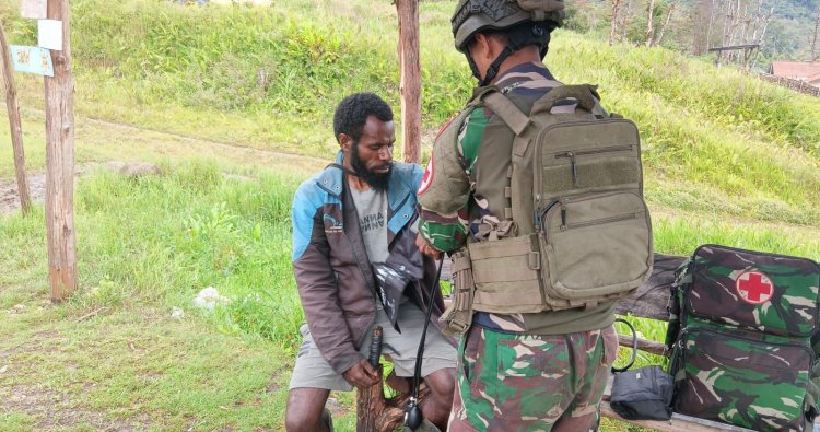 PUNCAK - Senyum merekah di wajah warga Kampung Ulipia, Distrik Wangbe, Kabupaten Puncak, Papua Pegunungan, pada Kamis (12/2/2026). Satgas Pamtas RI–PNG Mobile Yonif 732/Banau hadir membawa harapan baru melalui sentuhan kemanusiaan berupa layanan kesehatan gratis. Kehadiran mereka bukan sekadar penjaga perbatasan, melainkan sahabat yang siap merangkul dan membantu sesama di pelosok negeri.