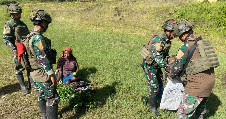 PUNCAK - Di tengah hamparan perbukitan Kampung Wangbe, Distrik Wangbe, Kabupaten Puncak, Papua Tengah, semangat gotong royong antara TNI dan masyarakat kian terasa. Personel Satgas Pamtas RI–PNG Yonif 732/Banau, melalui Pos Wangbe, tak hanya menjaga keamanan, namun juga turut menggerakkan denyut nadi ekonomi lokal. Pada Selasa (30/12/2025), sebuah aksi sederhana namun berdampak besar dilakukan: memborong hasil bumi dari kebun milik warga.