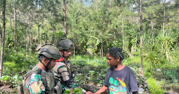 PUNCAK - Kehadiran TNI di wilayah perbatasan tidak hanya soal pengamanan, tetapi juga sentuhan nyata untuk menopang kehidupan masyarakat. Satgas Pamtas RI–PNG Yonif 732/Banau kembali membuktikan kepeduliannya melalui program inovatif bernama Rosita atau Borong Hasil Tani. Selasa (30/12/2025), personel Pos Julukoma di Kampung Julukoma, Distrik Beoga, Kabupaten Puncak, secara langsung mendatangi para petani yang sedang memanen dan menjajakan hasil kebun mereka.