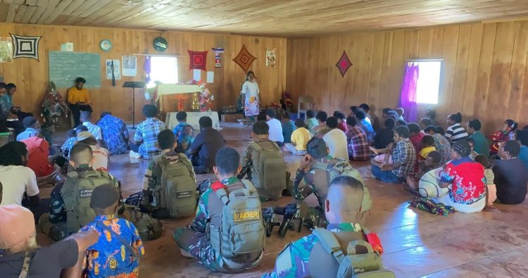 PUNCAK - Di tengah kehangatan nuansa pegunungan Papua, prajurit Satgas Pamtas RI-PNG Yonif 732/Banau tak hanya hadir sebagai benteng pertahanan, namun menjelma menjadi sahabat bagi masyarakat Kampung Julukoma. Melalui program unggulan 'Sahabat Banau' yang mengusung semangat 'Saling Hargai dan Toleransi Banau Amankan Natal dan Tahun Baru', kegiatan ibadah Minggu bersama warga pada Minggu (23/11/2025) di Distrik Beoga, Kabupaten Puncak, Papua, menjadi bukti nyata pendekatan humanis yang dijalankan.