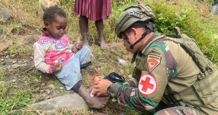 Wilayah Wangbe, yang belakangan ini kerap disorot karena tantangan keamanan, ternyata juga bergulat dengan krisis akses layanan dasar. Jarak dan medan yang sulit menjadi penghalang utama warga pegunungan untuk mencapai fasilitas kesehatan terdekat. Di sinilah Satgas 732/Banau merangkai strategi teritorialnya: keamanan yang lahir dari pelayanan, bukan semata-mata dari kekuatan senjata. Personel bergerak membawa perlengkapan medis dan obat-obatan langsung ke pelukan honai warga.