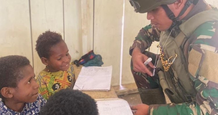 PUNCAK - Di tengah bentangan alam Papua Pegunungan yang eksotis namun penuh tantangan, sebuah inisiatif menyala untuk menerangi masa depan generasi penerus. Satgas Pamtas RI–PNG Yonif 732/Banau tak hanya hadir menjaga kedaulatan negeri, namun juga merajut asa melalui program inovatif bernama “Papua Melek”. Kampus sementara mereka di Kampung Marilaukin, Distrik Wangbe, Kabupaten Puncak, pada Rabu (19/11/2025), menjelma menjadi ruang kelas penuh keceriaan bagi puluhan siswa Sekolah Dasar.