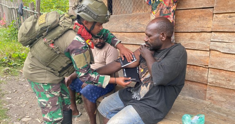 PUNCAK - Di tengah belantara pegunungan Distrik Beoga, Kabupaten Puncak, Papua Tengah, yang terpencil, langkah-langkah prajurit TNI kini bukan lagi sekadar menjaga kedaulatan, melainkan membawa denyut kehidupan melalui program kemanusiaan bertajuk "Pastoor" atau Pelayanan Kesehatan Door to Door. Inisiatif mulia dari Satgas Pamtas RI-PNG Yonif 732/Banau ini menjelma menjadi jembatan harapan, mengetuk pintu-pintu warga pedalaman dengan niat tulus mengobati dan menyembuhkan.