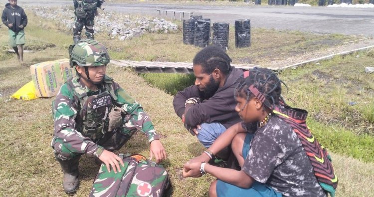 PUNCAK - Di tengah dinginnya udara pegunungan dan medan yang menantang, prajurit Satgas Yonif 142/Ksatria Jaya (KJ) Pos Agandugume menghadirkan kehangatan kemanusiaan melalui pelayanan kesehatan gratis bagi masyarakat di sekitar wilayah binaannya. Kegiatan ini menjadi bukti nyata kepedulian TNI terhadap kesejahteraan warga di pedalaman Papua yang selama ini kesulitan mendapatkan akses layanan medis. Minggu (26/10/2025).
