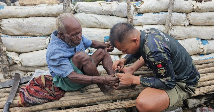 Pada Sabtu (21/2/2026), Bapak Simon Sindegau (65), seorang lansia dari Kampung Hugitapa, Distrik Homeyo, Kabupaten Intan Jaya, mendatangi Pos Kendetapa dengan harapan mendapatkan bantuan. Melihat kondisi kuku Bapak Simon yang sudah panjang dan berpotensi mengganggu kesehatannya, para prajurit Satgas tidak ragu untuk memberikan pertolongan.