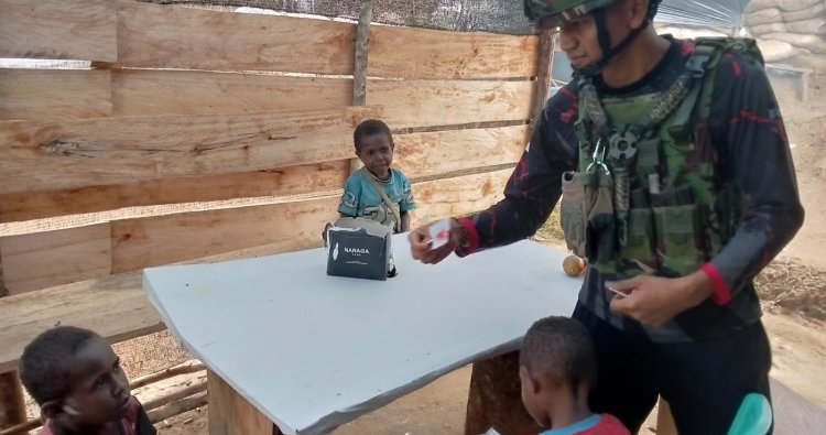INTAN JAYA - Di tengah keheningan Kampung Zanepa, Distrik Homeyo, Kabupaten Intan Jaya, Papua Tengah, sebuah momen penuh kehangatan terukir pada Jumat, (12/12/2025). Personel Pos Zanepa dari Satgas Pamtas RI PNG Mobile Yonif 113/JS tak sekadar menjalankan tugas penjagaan, namun juga menebar senyum melalui aksi berbagi sederhana namun bermakna: membagikan roti dan permen kepada anak-anak setempat. Tindakan ini menjadi pengingat akan indahnya kepedulian yang mampu hadir bahkan di pelosok negeri.