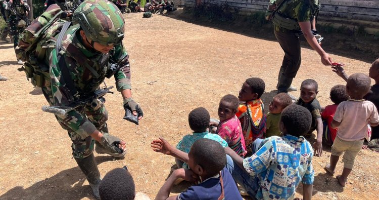 INTAN JAYA - Pagi di Distrik Homeyo, Kabupaten Intan Jaya, pada Selasa (25/11/2025) diselimuti kehangatan tak biasa. Bukan sekadar terik matahari, melainkan senyum lebar anak-anak Kampung Engganengga yang menyambut kedatangan prajurit Satgas Pamtas RI–PNG Mobile Yonif 113/Jaya Sakti (JS). Di tengah keterbatasan akses pangan dan pendidikan yang masih melanda pedalaman ini, sebuah suguhan sederhana—sepotong roti—menjelma menjadi lambang perhatian tulus dari negara.