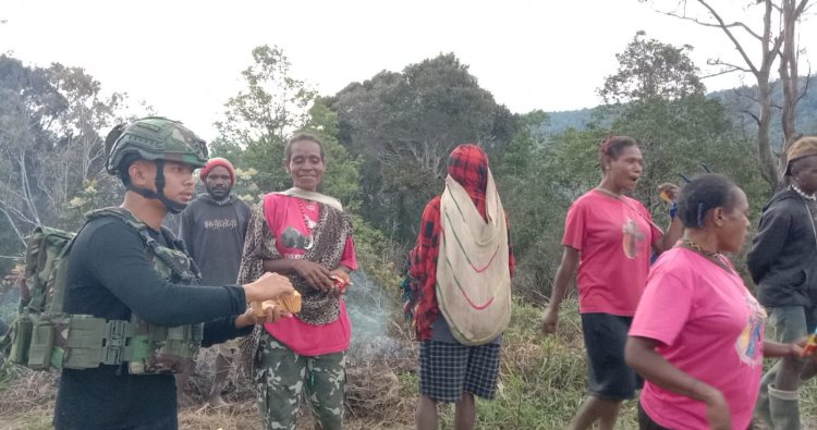 INTAN JAYA - Suasana Natal mulai terasa hangat di Kampung Kendetapa, Distrik Homeyo, Kabupaten Intan Jaya, Papua Tengah. Menyambut perayaan suci ini, personel Satgas Pamtas RI–PNG Mobile Yonif 113/Jaya Sakti (JS) Pos Kendetapa tak hanya menjaga keamanan, tetapi juga menebar kebaikan. Pada Jumat (19/12/2025) lalu, mereka membagikan kebahagiaan sederhana berupa makanan ringan, yaitu roti, kepada anak-anak di sekitar pos mereka.