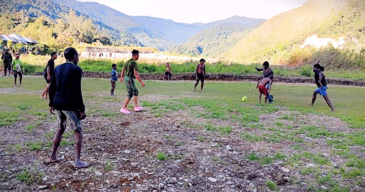 INTAN JAYA - Lapangan sepak bola Kampung Bilai di Intan Jaya, Papua Tengah, bergemuruh pada Senin (24/11/2025) dengan semangat kebersamaan yang membuncah. Satgas Pamtas RI-PNG Mobile Yonif 113/Jaya Sakti (JS) Pos TK Bilai tak hanya menjalankan tugas pengamanan, tetapi juga merajut erat hubungan dengan masyarakat melalui pertandingan sepak bola persahabatan.