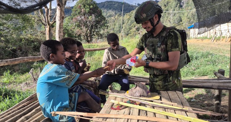 INTAN JAYA - Personel Satgas Pamtas RI–PNG Mobile Yonif 113/Jaya Sakti (JS) Pos Kendetapa membagikan makanan ringan kepada anak-anak di Kampung Kendetapa, Distrik Homeyo, Kabupaten Intan Jaya, Senin (9/2/2026). Kegiatan tersebut menjadi bagian dari upaya membangun kedekatan serta menghadirkan suasana kebersamaan antara prajurit TNI dan masyarakat di wilayah pedalaman.