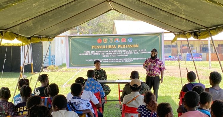 Wamena - Satuan Tugas TNI Manunggal Membangun Desa (Satgas TMMD) ke-126 Kodim 1702/Jayawijaya melaksanakan kegiatan penyuluhan pertanian bagi masyarakat di wilayah sasaran TMMD, kegiatan ini bertujuan untuk meningkatkan pengetahuan dan keterampilan warga dalam bidang pertanian, guna mendukung ketahanan pangan serta kesejahteraan masyarakat, kegiatan penyuluhan ini berlangsung di Kampung Algonik, Distrik Pyramid, Kab. Jayawijaya, Prov. Papua Pegunungan, Jumat (24/10/2025).