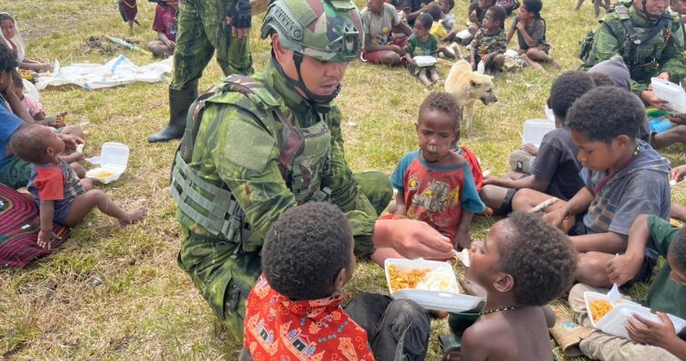 PUNCAK - Di Distrik Agandugume yang terpencil, Kabupaten Puncak, Papua, kehangatan menyelimuti Jumat, (12/12/2025). Personel TNI dari Pos Agandugume Satgas Yonif 142/KJ tak sekadar menjaga keamanan, namun juga menyebarkan senyum melalui aksi berbagi makanan gratis kepada warga. Ini bukan sekadar bantuan, melainkan jembatan hati yang kian kokoh antara prajurit dan masyarakat pedalaman.