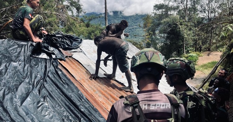 INTAN JAYA - Kehangatan kepedulian prajurit TNI kembali terasa di pelosok Papua Tengah. Personel Satgas Pamtas RI–PNG Mobile Yonif 113/Jaya Sakti, melalui Pos Engganengga, tak ragu mengulurkan tangan membantu warga Kampung Engganengga, Distrik Homeyo, Kabupaten Intan Jaya. Kali ini, fokus mereka adalah memperbaiki atap rumah warga yang porak-poranda diterpa angin kencang beberapa waktu lalu, tepatnya pada Selasa (10/2/2026).