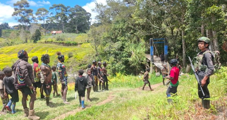 LANNY JAYA - Suasana tegang di Kampung Tumbupur, Distrik Kuyawage, Kabupaten Lanny Jaya, Papua Pegunungan, pada Jumat (6/2/2026) perlahan mencair berkat kehadiran prajurit Satgas Yonif 408/Sbh TK Tumbupur. Mereka turun tangan langsung, bertindak sebagai penengah dalam perselisihan adat yang berpotensi memecah belah kerukunan masyarakat setempat yang sangat menjunjung tinggi nilai adat dan budaya.