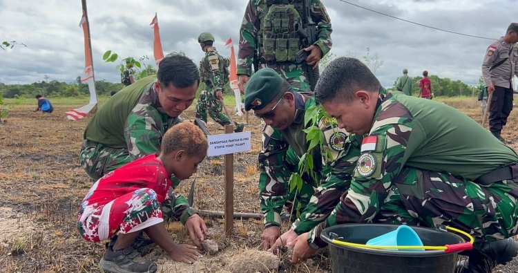 Dalam rangka menyambut Hari Gerakan Satu Juta Pohon Sedunia yang diperingati setiap Tanggal 10 Januari, Satgas Yonif 753/AVT melaksanakan kegiatan penanaman Ribuan Bibit Pohon berbagai jenis di beberapa lahan kampung binaan Satgas Yonif 753/AVT, Distrik Senggi, Kab. Keerom, Prov. Papua, Sabtu (10/01/2026).
