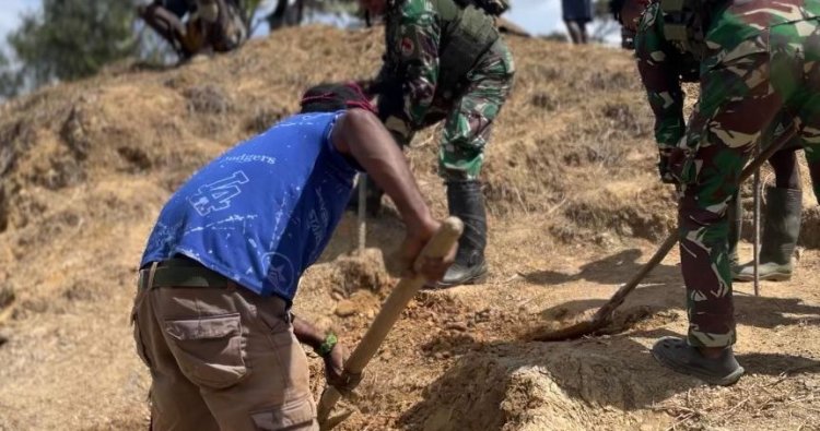 INTAN JAYA - Semangat baru menyambut Tahun Baru 2026 menginspirasi warga Kampung Engganengga, Distrik Homeyo, Kabupaten Intan Jaya. Pada Kamis (1/1/2026), alih-alih merayakan dengan hura-hura, personel Satgas Pamtas RI–PNG Mobile Yonif 113/Jaya Sakti Pos Engganengga memilih untuk turun tangan langsung bersama masyarakat memperbaiki jalan yang menjadi urat nadi kehidupan mereka. Jalan penghubung Engganengga–Pogapa–Zanepa, yang vital untuk aktivitas ekonomi, pendidikan, dan layanan sosial, kini kembali diperlancar berkat sinergi ini.