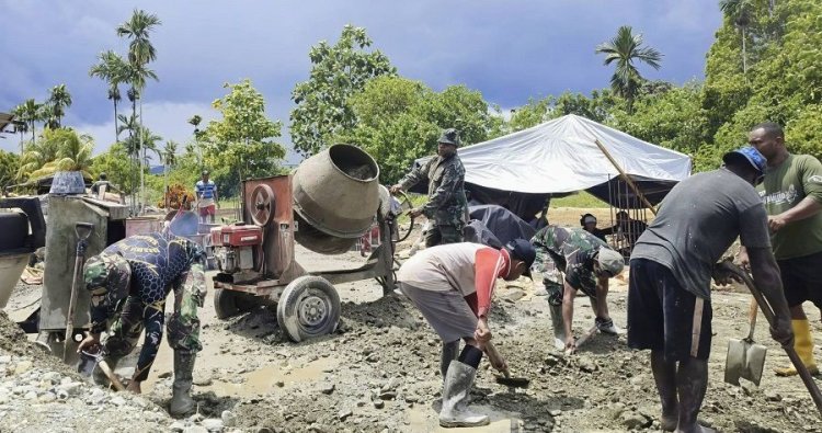 Keerom – Wujud nyata toleransi antarumat beragama serta kemanunggalan TNI dengan rakyat terus ditunjukkan oleh Babinsa jajaran Koramil 1701-23/Skanto. Sebanyak lima orang Babinsa yang dipimpin langsung oleh Serma Junaedi melaksanakan kegiatan kerja bakti pengecoran pondasi pembangunan Gedung Gereja GKI Solagratia di Kampung Jaifuri, Distrik Skanto, Kabupaten Keerom. Kamis (29/1/2026).