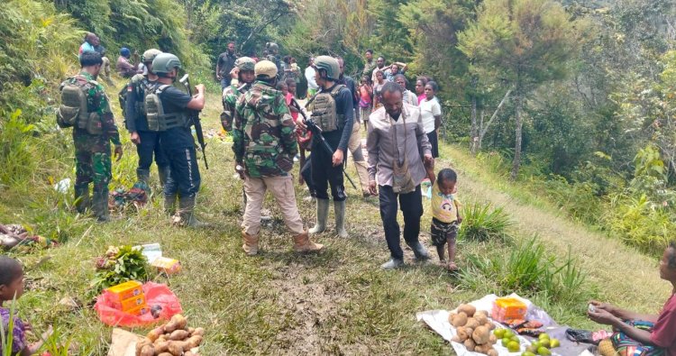 Namun, pengabdian prajurit Yonif 712/WT tak berhenti di mimbar gereja. Selepas ibadah, mereka sigap menjalankan program “Rosita” (Borong Hasil Tani), memborong hasil panen Mama-Mama Kampung Eknemba, mulai dari sayur mayur hingga ubi.