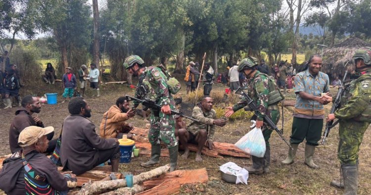 Momen kebersamaan yang hangat ini menjadi bukti nyata betapa eratnya hubungan yang terjalin antara prajurit TNI dan masyarakat di pedalaman Papua. Di balik seragam loreng yang gagah, tersimpan hati yang penuh kasih dan kepedulian, menjadi sumber kekuatan moral bagi warga setempat.